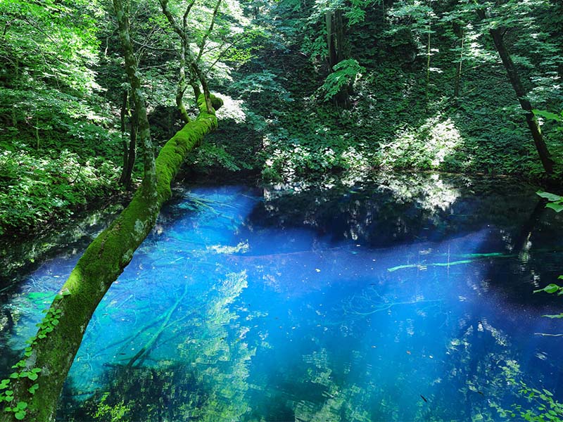 その山麓に点在する十二湖は、青く澄んだ湖面が神秘的な「青池」をはじめ、散策路が整備された人気スポットです。