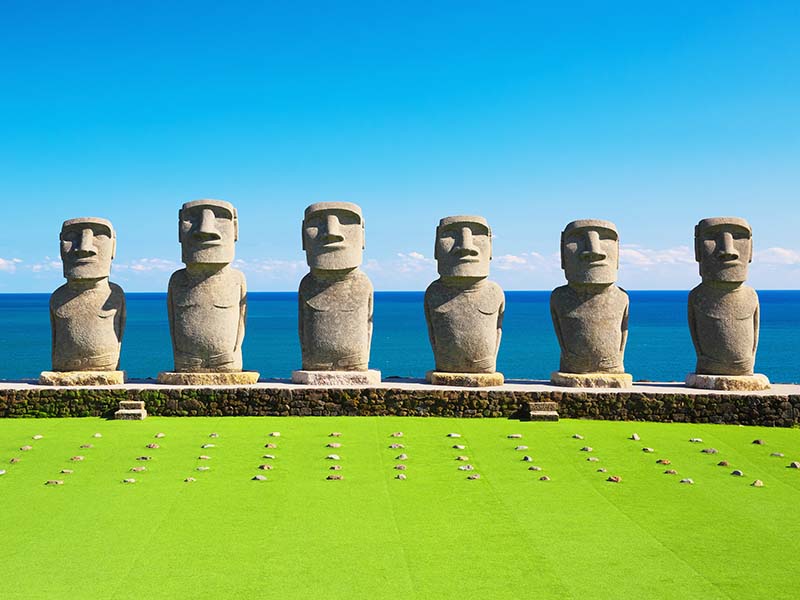 サンメッセ日南では、南国情緒あふれる風景と共に、巨大なモアイ像が訪れる人々を迎えます。