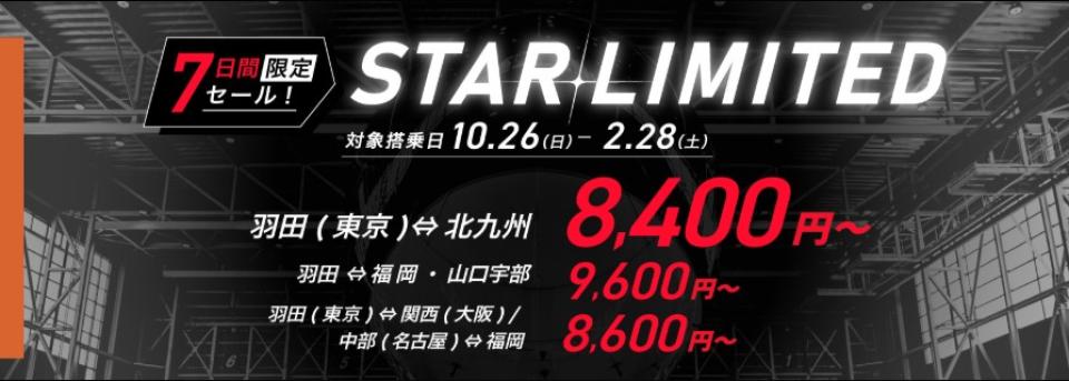 スターフライヤー(SFJ)より、「7日間限定セール!STAR LIMITED」のお知らせです。