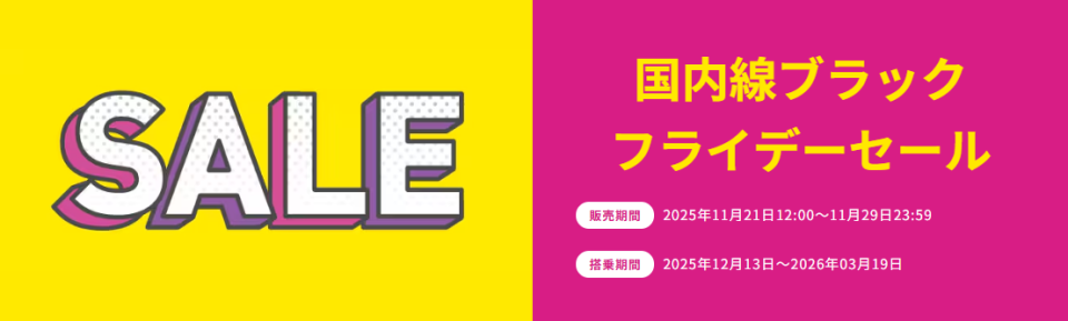 ピーチ(Peach/MM)にて、「国内線ブラックフライデーセール」のお知らせです。