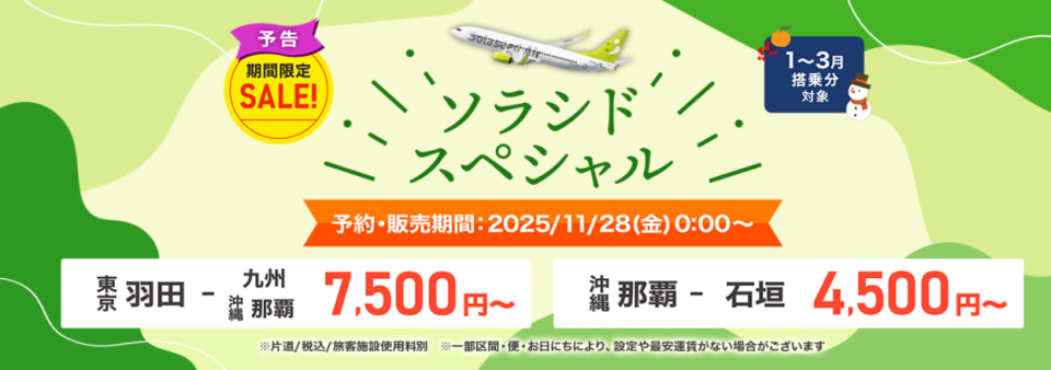 ソラシドエア(SNA)より、「ソラシドスペシャル」のお知らせです。
