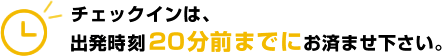 (出発時刻15分前までにゲートへお越しいただけない場合、チェックインを済ませていてもご搭乗できない可能性があり空港対応となりますため、お時間に余裕を持ってご利用ください。)